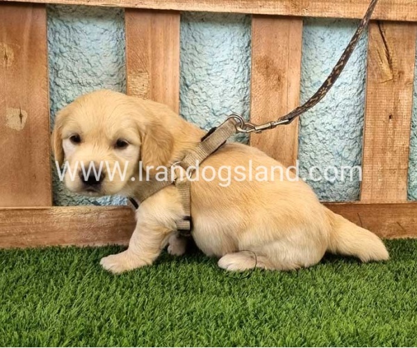 این توله گلدن خوشگل کاملا غذاخور شده و انگل تراپی شده هست.جنسیت نر و حدود 47 روز سن داره. در بهترین سن برای عادت کردن به صاحب اصلیش قرار داره و چون خیلی سگ باهوشی هست در این سن به سرعت آموزش دستشوییش رو یاد میگیره. رنگش کرم طلایی خوشرنگی هست که از نزدیک زیباتر هم دیده میشه. پوشش مویی فوق العاده عالی ای داره. آرام و مهربانه.