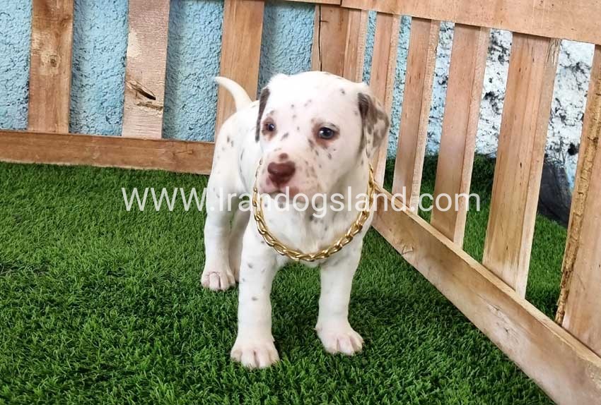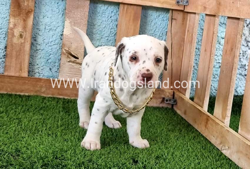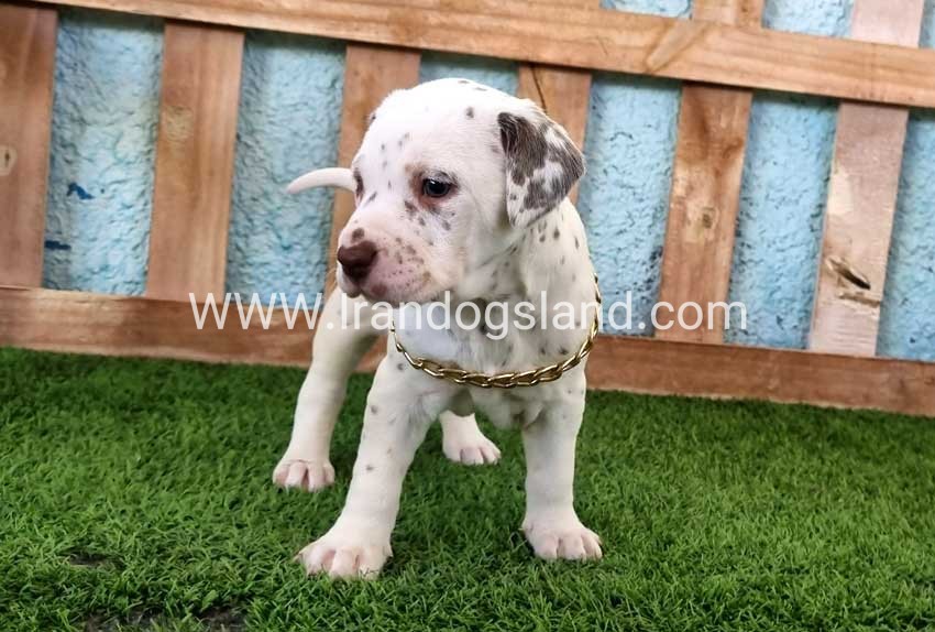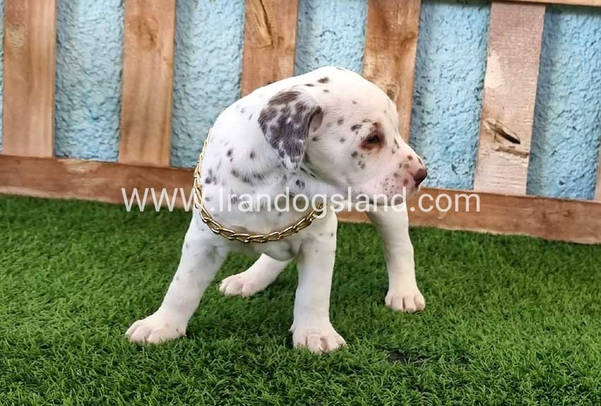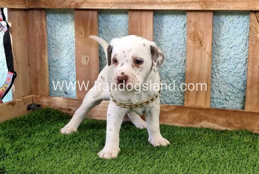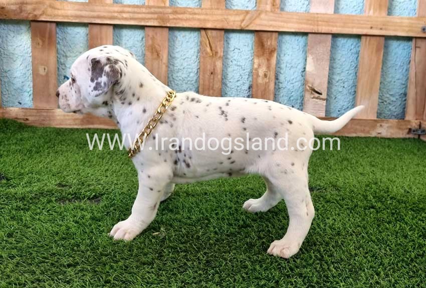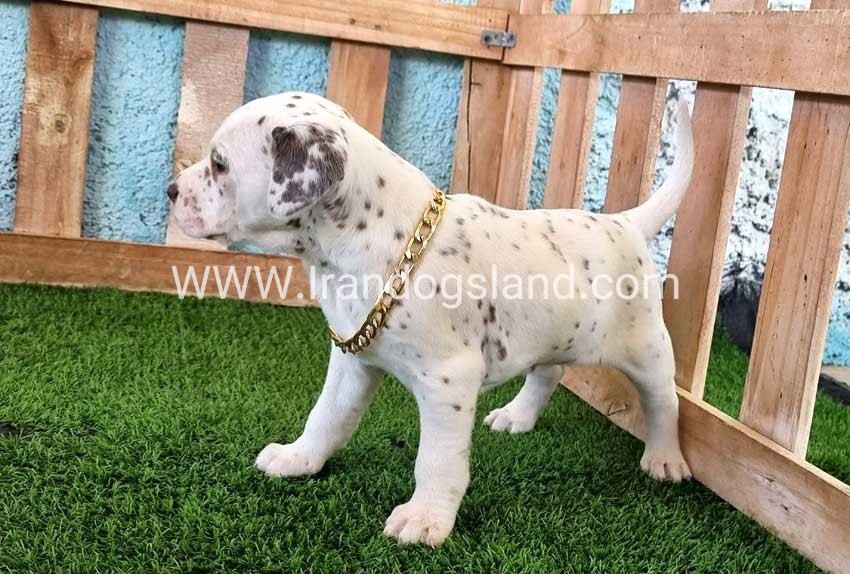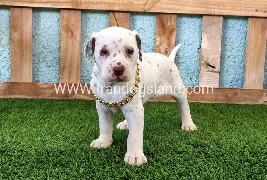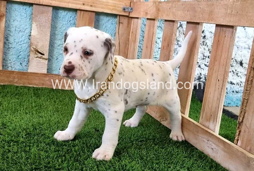 این توله دالمیشن که تصاویرش رو میبینید بسیار درشت و توپر و خوش هیکل هست. جنسیتش ماده و 1 ماه سن داره. بتازگی غذاخور و مستقل از مادر شده. کارهای بهداشتی و انگل تراپی هم براش انجام شده و آماده ی ارسال هست.خال های بدنش به قاعده در سراسر بدنش پخش شده. اگر تمایل به بازدید و خرید حضوری دارید همه روزه به غیر از روزهای تعطیل میتونید هماهنگ کنید و تشریف بیارید. در غیر این صورت به سراسر ایران ارسال داریم. فیلم این توله دالمیشن رو در زیر ببینید.