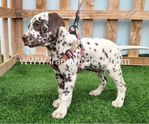 دوباره نوبت به این توله های خوشگل و خواستنی رسید. دالمیشن از بهترین گزینه های انتخاب سگ خانگی هست . چون هم مهربان و آرامه . هم خوش جثه و ظریفه و هم کم مو و بسیار تمیز. پارس بی موقع و زیاد هم اصلا نداره. اگر کارتون 101 سگ خالدار رو دیده باشید دقیقا از همون نژاد هست...... این توله دالمیشن کوچولو کاملا غذاخور شده و اگر گوشت رو هم بصورت پوره دربیارید و با ماست مخلوط کنید کاملا میخوره. جنسیتش نر هست و 50 روز سن داره. رنگ خال هاش قهوه ای پر رنگ هست و وقتی بزرگ بشه خیلی با ابهت میشه. خیلی هم جثه و پوزه ی قوی ای داره. انگل تراپی براش انجام دادیم و در اولین چکاب دوره ای که به دامپزشکی مراجعه کنید واکسنش زده میشه و شناسنامش به نام خودتون صادر میشه. امکان بازدید و خرید حضوری فراهم هست .در غیر این صورت به سراسر ایران ارسال می کنیم. برای اطلاعات بیشتر با من تماس بگیرید.