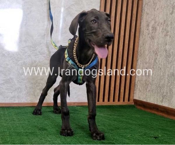 این توله گریت دین زیبا حدود 3 ماه سن داره و جنسیتش ماده هست. کاملا غذاخور شده و انگل تراپی شده. پنجه های بسیار قوی و عالی داره و رنگش خاکستری رنگه. از مولدهای بسیار عالی و درجه یک که میتونید از نزدیک برای بازدیدشون تشریف بیارید و یا تصویر پدرش رو در این صفحه ببینید. گریت دین برخلاف جثه ی درشت و ترسناکش ، بسیار سگ مهربان و متینی هست و یک سگ سلطنتی به شمار میاد. فیلم این توله گریت دین رو در زیر ببینید.
