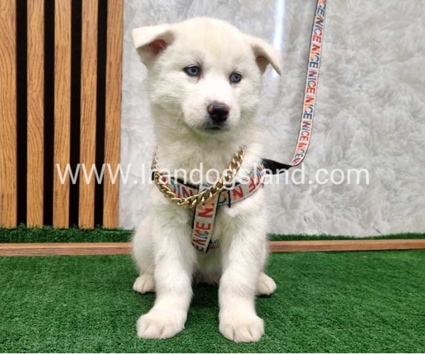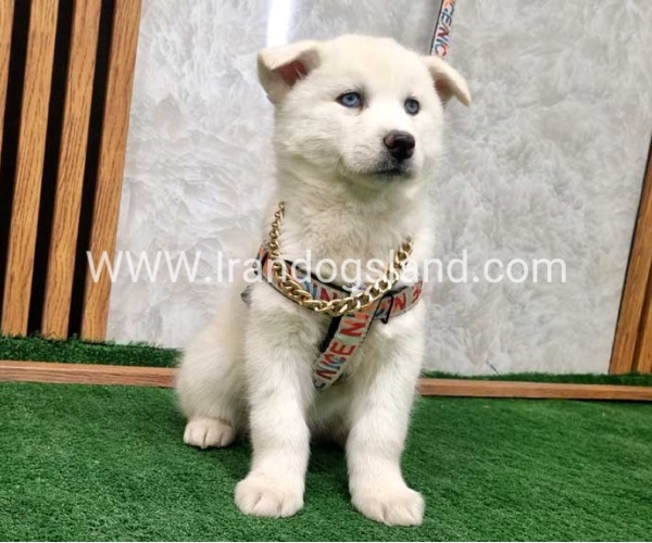 تولیدات این سری از نژاد هاسکی بسیار با کیفیت و درجه یک هستند توصیه میکنم اگر قصد خرید سگ خانگی دارید این توله هاسکی های فوق زیبا رو از دست ندین. مادر این توله هاسکی خوشگل ، سفید رنگ و پدرش مشکی رنگ بوده . برای همین هر دو ژن در بدنش هست. مادر و پدر بسیار درشتی داره که خود این توله هم بسیار درشت و توپر شده و تراکم مویی بسیار بالایی داره. چشمهای آبی رنگ زیبا..... به پوزه ی پهن و گوشهای کوتاهش دقت کنید که از مشخصه های هاسکی درجه یک هست. تا چند روز دیگه هم گوشهاش کاملا فرم میگیره و سیخ میشه و زیباییش دوبرابر میشه. این توله هاسکی سفید در حال حاضر 2 ماه سن داره و جنسیتش ماده هست .غذاخور شده و کاملا آماده برای عادت کردن به صاحب جدیدش هست. در ادامه براتون یه فیلم کوتاه از زیباییهای این توله هاسکی سفید میگذارم.