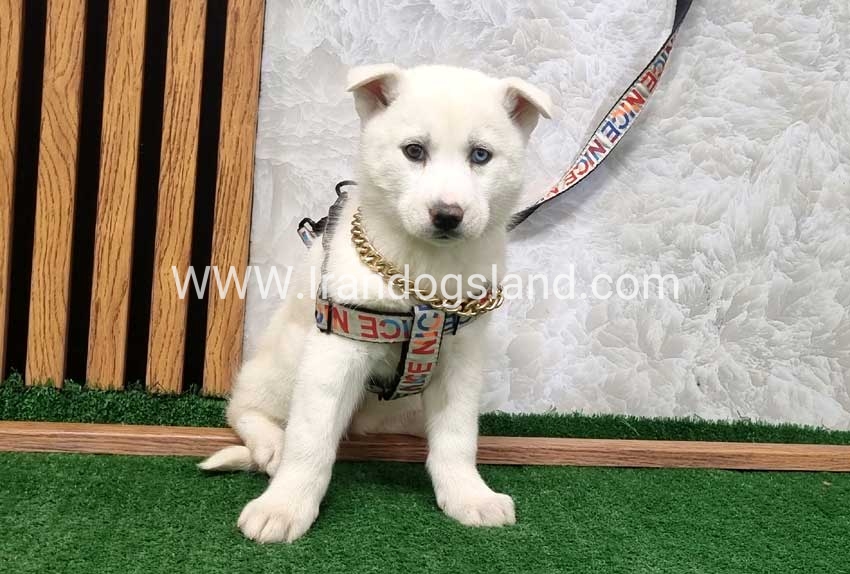 تولیدات این سری از نژاد هاسکی بسیار با کیفیت و درجه یک هستند توصیه میکنم اگر قصد خرید سگ خانگی دارید این توله هاسکی های فوق زیبا رو از دست ندین. مادر این توله هاسکی خوشگل ، سفید رنگ و پدرش مشکی رنگ بوده . برای همین هر دو ژن در بدنش هست. مادر و پدر بسیار درشتی داره که خود این توله هم بسیار درشت و توپر شده و تراکم مویی بسیار بالایی داره. چشمهای تا به تا مخصوص خاص پسندان..... به پوزه ی پهن و گوشهای کوتاهش دقت کنید که از مشخصه های هاسکی درجه یک هست. تا چند روز دیگه هم گوشهاش کاملا فرم میگیره و سیخ میشه و زیباییش دوبرابر میشه. این توله هاسکی سفید در حال حاضر 2 ماه سن داره و جنسیتش ماده هست .غذاخور شده و کاملا آماده برای عادت کردن به صاحب جدیدش هست. در ادامه براتون یه فیلم کوتاه از زیباییهای این توله هاسکی سفید میگذارم.