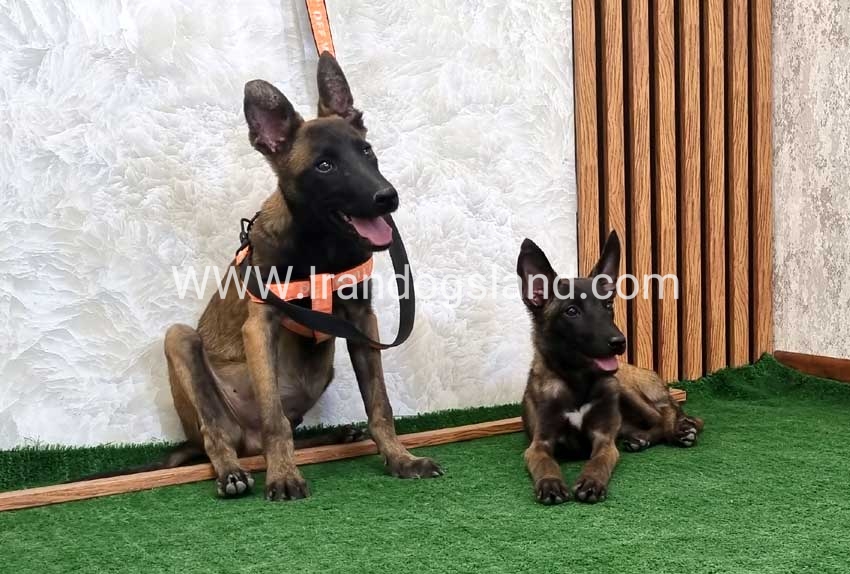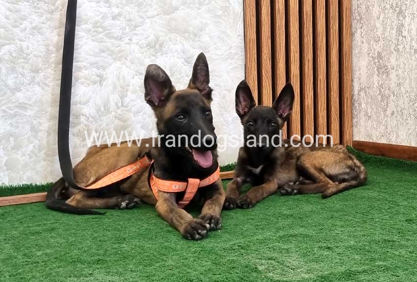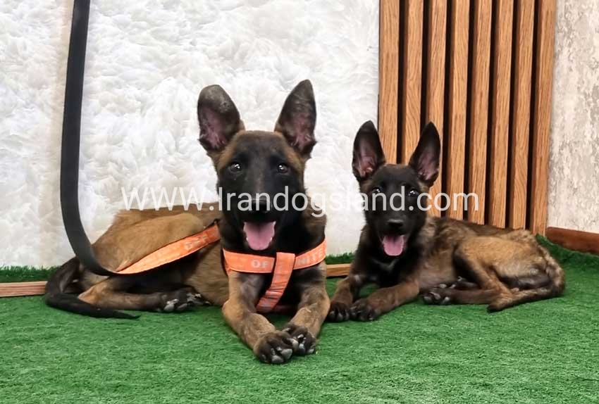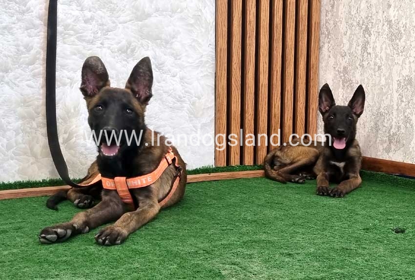 مجموعه سرزمین سگ ها به جرات بالاترین کیفیت نژاد مالینویز رو پرورش میده. چه از لحاظ جثه و آناتومی و چه از لحاظ رنگبندی. توله مالینویزی که در تصاویر قلاده نداره و یک نشون سفید رنگ توی سینش داره جنسیتش ماده هست و حدود 2/5 ماه سن داره.اون یکی مالینویز که قلاده شده نر هست و 3 ماه سن داره. کاملا غذاخور شده و انگل تراپی شده و مستقل از مادرش هست. از لحاظ رنگبندی که دیگه نگم براتون عکسها کاملا گویا هستند.... رنگبندی عالی و تیره ای داره .
