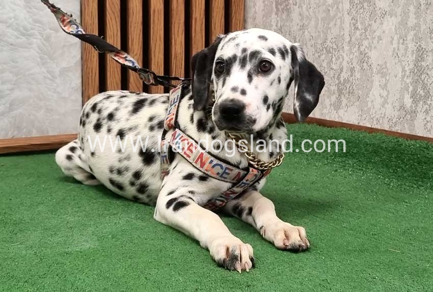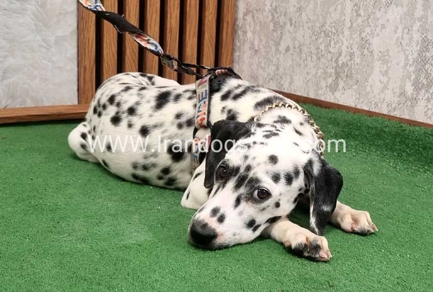 این توله دالمیشن خال مشکی 4 ماه سن داره و کاملا از آب و گل در اومده هست. جنسیتش ماده هست و یک سگ بسیار باهوش و آرام و باوقار هست که به سرعت عاشقش میشید. تمام کارهای بهداشتی و واکسیناسیون این دالمیشن انجام شده. خیلی خوش خط و خال هست و تمام خالهاش منفصل از هم هست که از نشانه های دالمیشن اصیل هست. جفت گوشهاش مشکی رنگ و متقارن هست. سگ دالمیشن یک سگ کم مو و بسیار تمیز هست. جثه ی متوسطی داره و برای نگهداری در منزل عالی هست. این نژاد بخاطر حس بویایی قوی ای که دارند بعنوان سگ شکار استفاده میشوند.