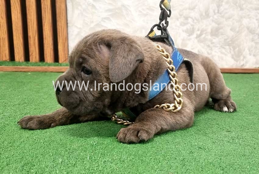 این توله کنکورسو خاص ترین رنگ ، معروف به بلو رو داره. بسیار زیبا و گردن کلفت هست. این توله کنکورسو تک توله بوده و مادرش فقط همین توله رو بدنیا آورده . برای همین تمام شیر مادر سهم خودش شده و بسیار توله ی درشت جثه ای شده. سن این توله کنکورسو 55 روز سن داره و جنسیتش ماده هست. به لیویرها و پوزه ی قوی ای که داره دقت کنید. سگ کنورسو یک سگ قوی جثه برای نگهبانی هست. برای دریافت اطلاعات بیشتر با من تماس بگیرید . امکان بازدید از مجموعه و همینطور ارسال به سراسر ایران فراهم هست.