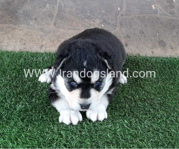 این توله هاسکی تراکم و پوشش مویی عالی ای داره. جثه ی درشت و خوبی نسبت به خواهرای دیگش داره که اصطلاحا شاه توله ی ماده به حساب میاد. غذاش فعلا شیر هست که تا حدود یک هفته دیگه میتونه ماست هم بخوره. در بهترین سن برای جدا شدن از مادر قرار داره تا به شما وابسته بشه و زیاد سر و صدا نکنه. برای بازدید این توله با من تماس بگیرید. در ادامه یه فیلم کوتاه از این توله هاسکی براتون گذاشتم که ببینید.